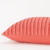 This stunning accent pillow from Rizzy Home in a beautiful shade of coral exudes classic charm and timeless appeal, perfect for almost any décor. Measuring 14" x 26", this pillow is thoughtfully crafted with a cotton/viscose blend for extreme durability and comfort to withstand everyday lifestyles. With a woven construction, this pillow embodies transitional style with a touch of modern industrial influence. The stripe patterned solid fabric creates a captivating visual effect, adding depth and dimension in any living space. The light texture of the woven fabric enhances its overall aesthetic appeal with a pop of coral color in any room. The tonal stripe is created by skillfully weaving the pattern into the fabric, resulting in a cohesive and sophisticated design. The knife-edged construction adds a polished and refined finish, ensuring the pillow will maintain its shape. Designed for both style and practicality, this accent pillow features a coordinating solid cotton back with a hidden zipper closure. This vibrant accent to your interior is a must-have that is versatile enough to blend and mesh with a variety of styles and elements--to elevate any décor with intrigue and classic style.