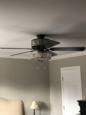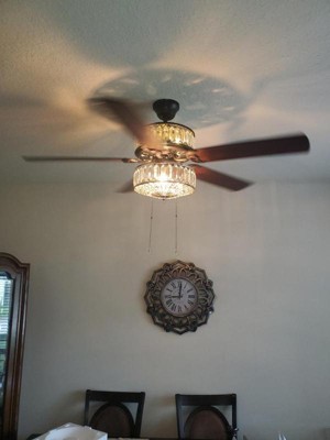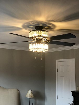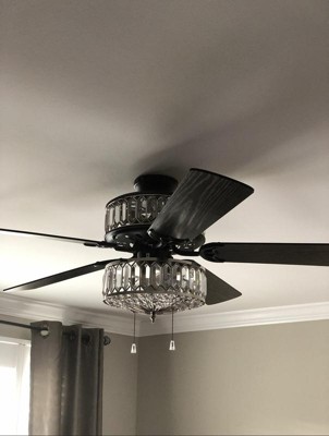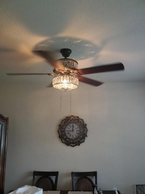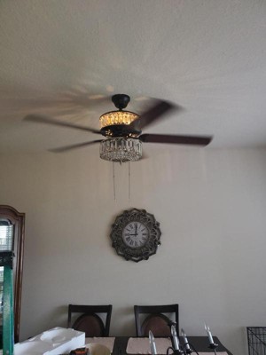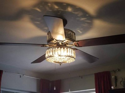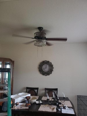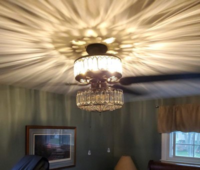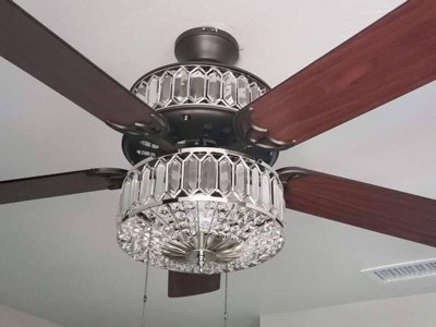 [This review was collected as part of a promotion.] This is a very classy and elegant looking fan with one side featuring the mahogany finish and the other side antique black color. Gives a modern touch to our master bedroom. The K-9 crystals create a stunning illumination. Would highly recommend River of Goods products to everyone!