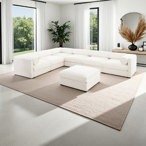 Includes: 1 Corner Sectional Piece, 1 Left Arm Sectional Piece, 1 Right Arm Sectional Piece, 3 Armless Sectional Pieces, 1 Ottoman