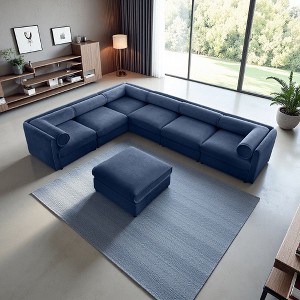 Includes: 1 Corner Sectional Piece, 1 Left Arm Sectional Piece, 1 Right Arm Sectional Piece, 3 Armless Sectional Pieces, 1 Ottoman