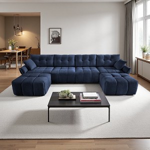 142" Chenille Modular U-Shaped Sectional Sofa with 2 Ottomans