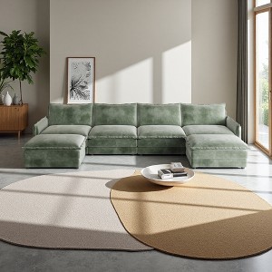 - Flexible Modular Design: More than just a 3-seater with ottomans, this sofa system can be expanded and reconfigured to suit your space. Combine with additional modules or armless sections to create a U-shaped arrangement or other custom layouts¡ªyour creativity makes your living room truly unique.