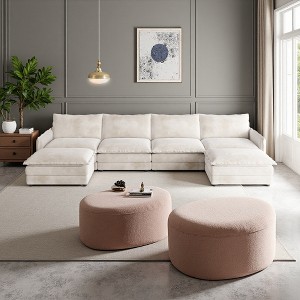 142" Corduroy Cloud Modular U-Shaped Sectional Sofa with 2 Ottomans