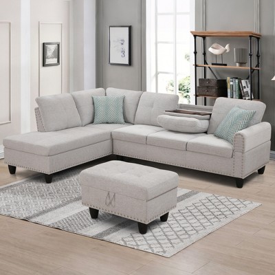 Includes: 1 Left Arm Sectional Piece, 1 Right Arm Sectional Piece, 2 Armless Sectional Pieces, 2 Ottomans