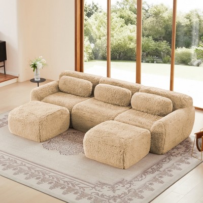 149'' Soft Plush Boneless Sofa,32D HD Sponge,Ergonomic Design,Vacuum Packaging,Free Combination,Buckle Connection for Bedroom/Study/Home Theater