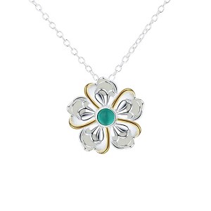 14K Gold and Sterling Silver Jade Peony Flower Pendant Necklace