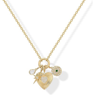 This elegant pendant necklace features 14K yellow gold plating and comes with a 16" chain plus a 2" extender. It has a 2mm wide square beaded chain with a lobster clasp, and is adorned with a diamond-shaped cubic zirconia stone measuring 3mm x 3mm.