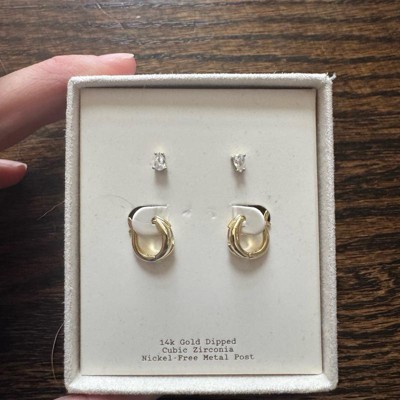14K Gold Dipped Cubic Zirconia Gem Huggie Hoop and Stud Earring Set 2pc - A New Day™ Gold
