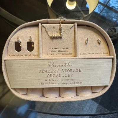 [This review was collected as part of a promotion.] This jewelry set was such a great find as a gift for my teen sister! The gold-dipped necklace and matching huggie earrings look delicate, classy, and a lot more expensive than the price suggests. The cubic zirconia has a pretty sparkle without being too flashy. The best part is the reusable jewelry organizer it comes with. I can’t wait to see her reaction when she pulls this out of her Christmas stocking!