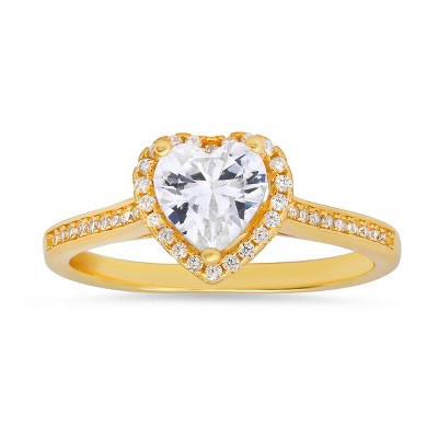 14k Gold Over Silver Bezel-set Heart CZ Ring