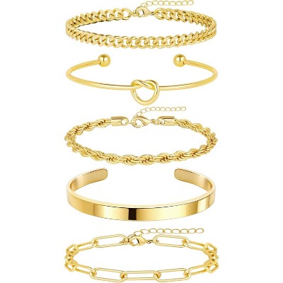 - Trendy Stackable Collection → Mix and match chunky cuff, Cuban rope, paperclip chain, and tie-knot bangles to create personalized, fashionable arm candy.