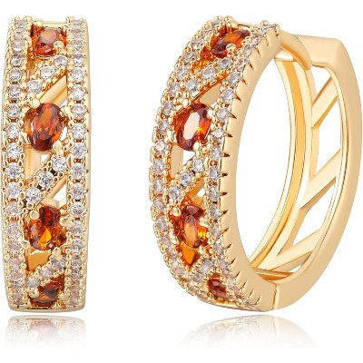 Gold-Plated Chunky Dangle Hoop Earrings for Women - Medium Thick Huggie Statement Jewelry C7 Brown Amber Oval Hoops One Size