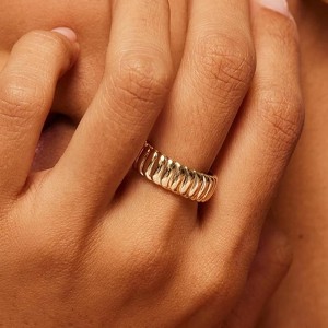 14K Gold Plated Chunky Statement Ring | Chunky Stackable Wide Band for Women