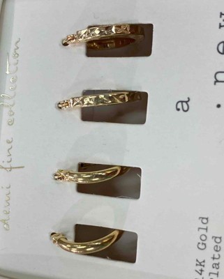 Add an easy accessorizing option to your jewelry collection with the 14K Gold Plated Click Top Duo Hoop Earring Set from A New Day™. This duo hoop earring set includes one simple set and one with a diamond-like pattern for added visual interest. Each piece is designed in a gold tone for easy mixing and matching with your outfits, and boasts a nickel-free construction to suit all skin types. Add the pieces to your own accessory collection, or gift them to a loved one for their birthday, anniversary or any other occasion.