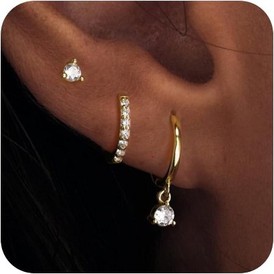 14K Gold Plated Cross Earrings with Sterling Silver Posts, CZ Stud & Huggie Designs