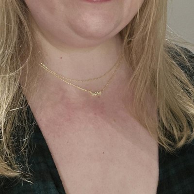 Add some glam sparkle to your outfits with this 14K Gold-Plated Cubic Zirconia Cluster Multi-Strand Necklace from A New Day™. This layered necklace features two delicate cable chains and a cluster of cubic zirconia stones to add the right amount of shimmer to your look. Designed with an adjustable extender, it lets you customize the length of the multi-strand necklace to suit your neckline. Plus, this gold-plated necklace is made from nickel-free metal to suit most skin types.