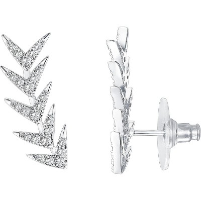 14K Gold-Plated Cubic Zirconia Earrings - Stylish Earrings with Imitation Diamond Arrow Design White Gold-Mini 0.4*0.08
