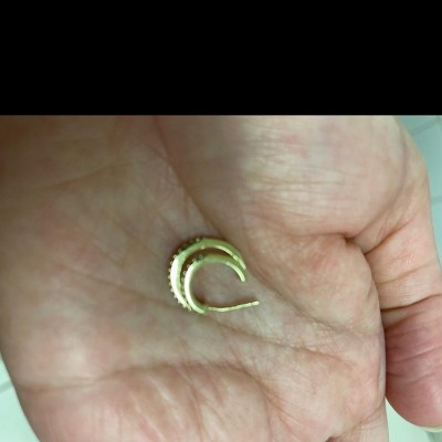 After wearing them 1 month 24/7 they turned my ears green. I used them with the same backing they came with. Plus, even my husband said they looked so fake. I ordered h them online because they looked delicate and fine like real gold ones would look, but turns out they look like not quality made.