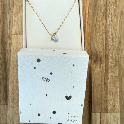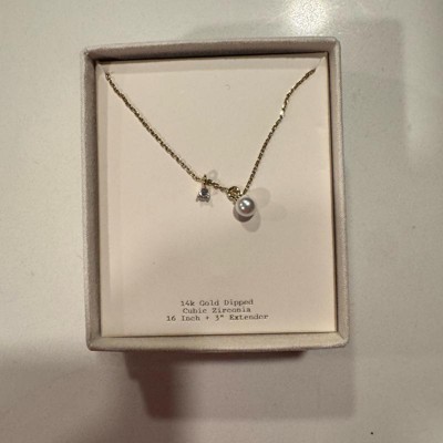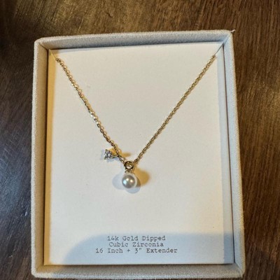 14K Gold Plated Cubic Zirconia Pearl Charm Pendant Necklace - A New Day™ Gold