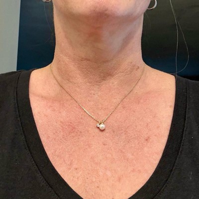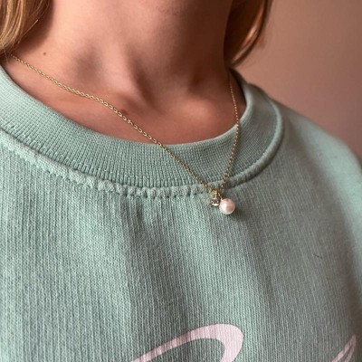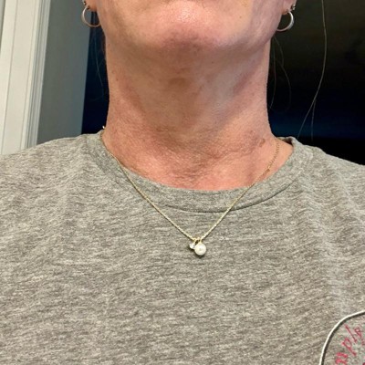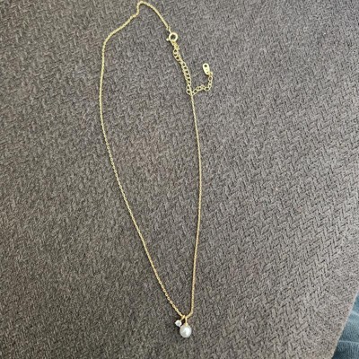 [This review was collected as part of a promotion.] I bought this necklace for my sister who likes to stack jewelry. She wears the same necklace everyday and I thought this would look nice paired with it. This is a small dainty pearl charm that’s coated in 14k gold which is great for sensitive skin. The chain was okay quality, and it’s adjustable in length. The clasp was small and hard to clip. This is great to wear on all occasions dressy or casual.