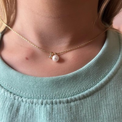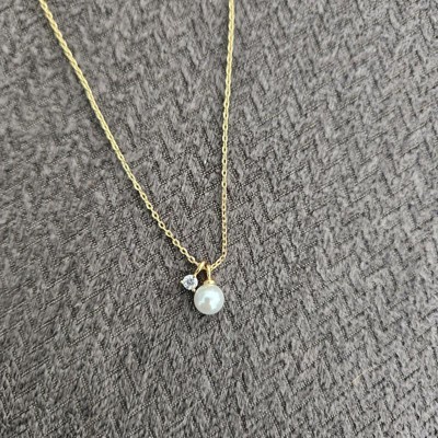 [This review was collected as part of a promotion.] This is such a sweet necklace. It features a 14k gold plated chain that is adjustable itself depending on your neckline which is amazing. It also has a smaller pearl as well as a cubic zirconia gem next to that. It is such an elegant classic necklace. I am a sucker for dainty necklaces and this one hits the mark.
