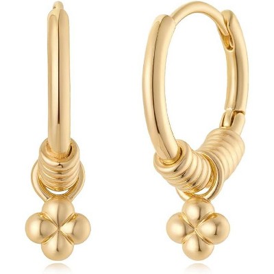 - Gold Earrings:The delicate main ring is layered with three spirited small ring pendants, one of which is set with a sparkling zirconia, adding elegant detail to the simplicity and easily elevating the style of the outfit.