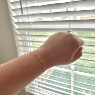 The 14K Gold Plated Paperlink Chain Bracelet from A New Day™ is the perfect accessory to give your favorite outfit a fresh new look. It's made out of 14k gold-plated, nickel-free metal and features a lobster-claw clasp to help keep it in place as you go about your day in unparalleled style. From T-shirts and jeans to a great go-to dress, it's an easy way to quickly add a little pretty polish to your look.