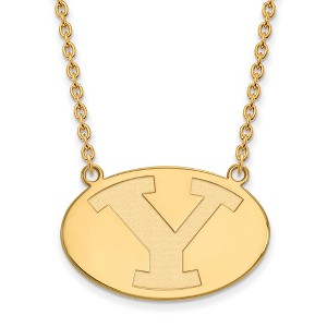 If you are a fan of Brigham Young University and the Cougars then you need to show your school spirit with this Brigham Young University necklace. We are a certified retailer and this authentic item is officially licensed. It is crafted from 14k yellow gold plated sterling silver and crafted in the USA. 18 inches in length. Additional features include: crafted from 14k yellow gold plated sterling silver; authentic and made in the usa; perfect for every cougars fan; officially licensed for brigham young university.