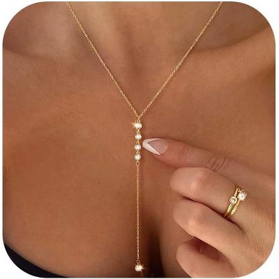 14K Gold Plated/Silver Lariat Necklace - Y-Shaped Beaded Chain for Women