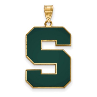 If you are a fan of Michigan State University and the Spartans then you need to show your school spirit with this Michigan State University pendant. We are a certified retailer and this authentic item is officially licensed. It is crafted from 14k yellow gold plated sterling silver and crafted in the USA. Additional features include: crafted from 14k yellow gold plated sterling silver; authentic and made in the usa; perfect for every spartans fan; officially licensed for michigan state university.