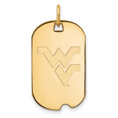 If you are a fan of West Virginia University and the Mountaineers then you need to show your school spirit with this West Virginia University pendant. We are a certified retailer and this authentic item is officially licensed. It is crafted from 14k yellow gold plated sterling silver and crafted in the USA. Additional features include: crafted from 14k yellow gold plated sterling silver; authentic and made in the usa; perfect for every mountaineers fan; officially licensed for west virginia university.