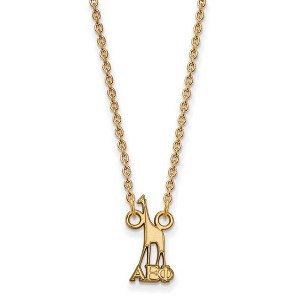 - Unique Features - Show your greek life spirit with this Alpha Epsilon Phi Sorority necklace. It is crafted with yellow gold plated silver and is 18 Inches in length. The pendant is 14mm in width and 7mm in height (0.55 in x 0.28 in) and dangles from a 1.25mm wide cable chain. We are a certified Collegiate jewelry retailer and this authentic item is licensed by the Alpha Epsilon Phi Sorority and Greek Life. This pendant necklace is made the USA.
