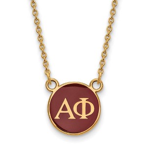 - Unique Features - Show your greek life spirit with this Alpha Phi Sorority necklace. It is crafted with yellow gold plated silver and is 18 Inches in length. The pendant is 12mm in width and 12mm in height (0.47 in x 0.47 in) and dangles from a 1.25mm wide cable chain. We are a certified Collegiate jewelry retailer and this authentic item is licensed by the Alpha Phi Sorority and Greek Life. This enameled pendant necklace is made the USA.