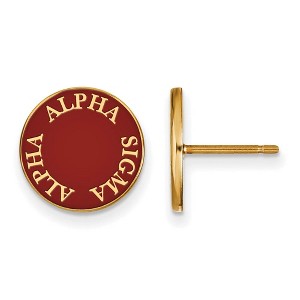 Show your Greek life spirit with these Alpha Sigma Alpha Sorority earrings. They are crafted from yellow gold plated silver and are 12 mm in length and 12 mm in width. We are a certified Collegiate jewelry retailer and this authentic item is licensed by the Alpha Sigma Alpha Sorority and Greek Life. These enameled post earrings are made the USA. Additional features include: crafted with yellow gold plated silver; authentic and made in the usa; 12mm in length and 12mm in width; licensed by greek life and the alpha sigma alpha sorority.