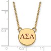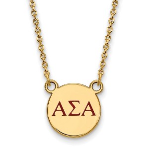 - Unique Features - Show your greek life spirit with this Alpha Sigma Alpha Sorority necklace. It is crafted with yellow gold plated silver and is 18 Inches in length. The pendant is 12mm in width and 12mm in height (0.47 in x 0.47 in) and dangles from a 1.25mm wide cable chain. We are a certified Collegiate jewelry retailer and this authentic item is licensed by the Alpha Sigma Alpha Sorority and Greek Life. This enameled pendant necklace is made the USA.
