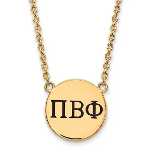 - Unique Features - Show your greek life spirit with this Pi Beta Phi Sorority necklace. It is crafted with yellow gold plated silver and is 18 Inches in length. The pendant is 19mm in width and 19mm in height (0.75 in x 0.75 in) and dangles from a 1.95mm wide cable chain. We are a certified Collegiate jewelry retailer and this authentic item is licensed by the Pi Beta Phi Sorority and Greek Life. This enameled pendant necklace is made the USA.