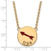 Show your greek life spirit with this Pi Beta Phi Sorority necklace. It is crafted with yellow gold plated silver and is 18 Inches in length. The pendant is 19mm in width and 19mm in height (0.75 in x 0.75 in) and dangles from a 1.95mm wide cable chain. We are a certified Collegiate jewelry retailer and this authentic item is licensed by the Pi Beta Phi Sorority and Greek Life. This enameled pendant necklace is made the USA. Additional features include: crafted with yellow gold plated silver; authentic and made in the usa; 18 inches in length; licensed by greek life and the pi beta phi sorority.