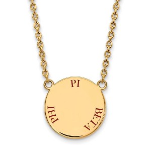 - Unique Features - Show your greek life spirit with this Pi Beta Phi Sorority necklace. It is crafted with yellow gold plated silver and is 18 Inches in length. The pendant is 19mm in width and 19mm in height (0.75 in x 0.75 in) and dangles from a 1.95mm wide cable chain. We are a certified Collegiate jewelry retailer and this authentic item is licensed by the Pi Beta Phi Sorority and Greek Life. This enameled pendant necklace is made the USA.