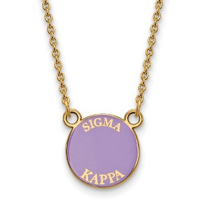 - Unique Features - Show your greek life spirit with this Sigma Kappa Sorority necklace. It is crafted with yellow gold plated silver and is 18 Inches in length. The pendant is 12mm in width and 12mm in height (0.47 in x 0.47 in) and dangles from a 1.25mm wide cable chain. We are a certified Collegiate jewelry retailer and this authentic item is licensed by the Sigma Kappa Sorority and Greek Life. This enameled pendant necklace is made the USA.
