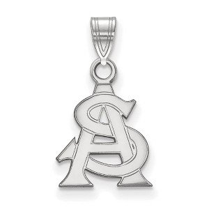 If you are a fan of Arizona State University and the Sun Devils then you need to show your school spirit with this Arizona State University pendant. We are a certified retailer and this authentic item is officially licensed. It is crafted from 14k White Gold and crafted in the USA. Additional features include: crafted from 14k white gold; authentic and made in the usa; perfect for every sun devils fan; officially licensed for arizona state university.
