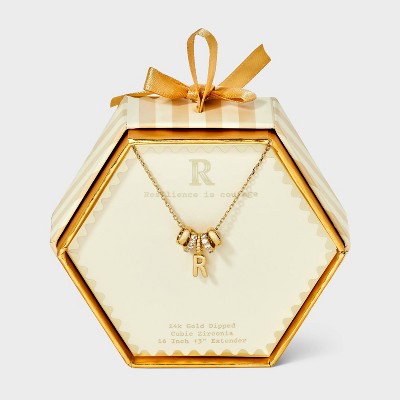 14kt Gold Dipped Cubic Zirconia "R" Initial Necklace - A New Day™ Gold