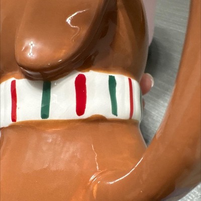 This Christmas Figural Dog Mug with Scarf from Wondershop™ is a perfect pick for any dog parent. Made from earthenware, this mug is designed in the shape of a dog wearing a striped scarf for cute, wintry charm. Suitable for hot and cold beverages, this 14-ounce mug is also dishwasher and microwave safe for easy cleaning and reheating. Plus, it has a curved side handle for comfy holding.