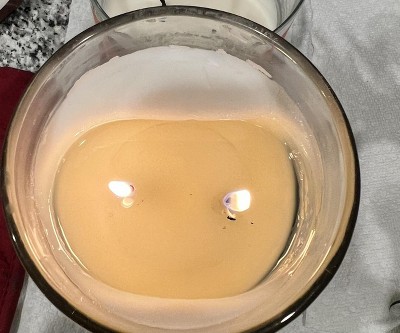 Not a big fan of this candle. I had higher hopes for it. The smell does not reverberate around the room at all and the burn is not even at all. As you can tell from the photos, it’s not going to evenly burn and the wax isn’t even soft enough for me to scrape into the middle. I would keep looking if I were you.