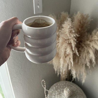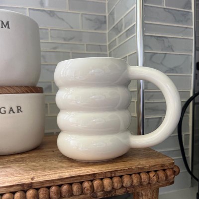Add sophisticated style to your drinkware with the 14-Ounce Stoneware Artisan Mug from Room Essentials™. This white mug features a round ridged design for an appealing look. Great for hot or cold beverages, this stoneware mug boasts a microwave- and dishwasher-safe design for quick reheating and cleaning.