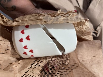 I was buying these mugs for my three children for Valentine’s Day and had them shipped on two separate occasions and they arrived broken both times. They didn’t put any protective materials in to protect them. The second time they set the mug out they put it in a bag with no wrapping. I’m just very disappointed.