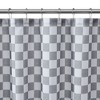 - Fabric shower curtain features grey and white checkered prints