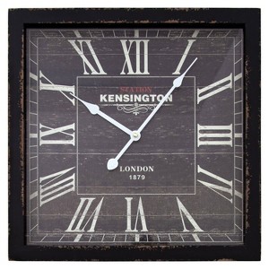15¾" Square Wall Clock Distressed Brown - Yosemite Home Decor: Modern Style, Analog Display, Indoor Use