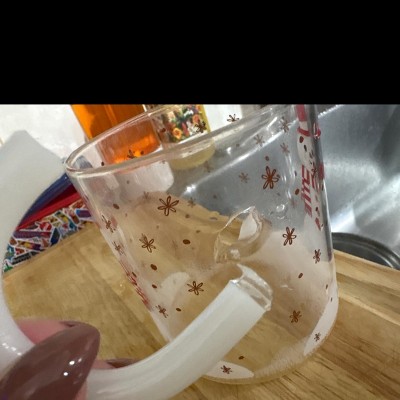 Add a dash of fun and warmth to your holiday mornings and beyond with this Christmas Snowman Glass Mug from Wondershop™. Made from glass, this transparent Christmas mug features allover prints of snowflakes along with a graphic of a snowman wearing a red hat, scarf and gloves on both sides. Plus, it comes with a curved handle for a comfortable grip. Great to sip hot and cold beverages, this 15.2-fluid-ounce cup is also microwave safe for easy reheating.