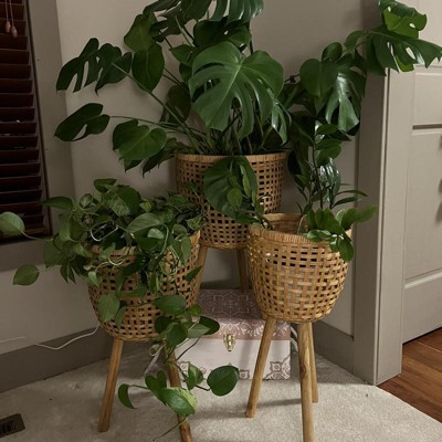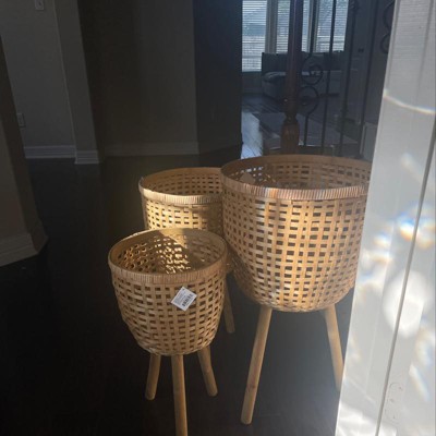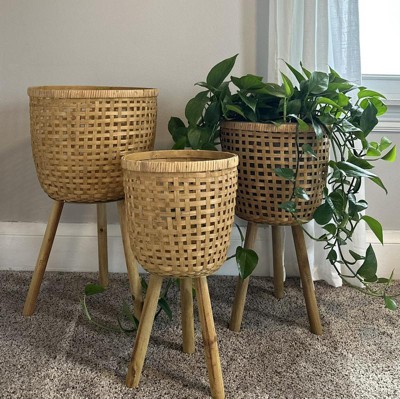 15" and 13" and 11" Wide 3pc Planter Pots Bohemian Woven Bamboo Brown - Olivia & May
