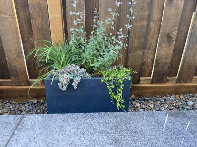 15" Kante Lightweight Modern Long Low Outdoor Concrete Rectangular Planter Charcoal Black - Rosemead Home & Garden, Inc.